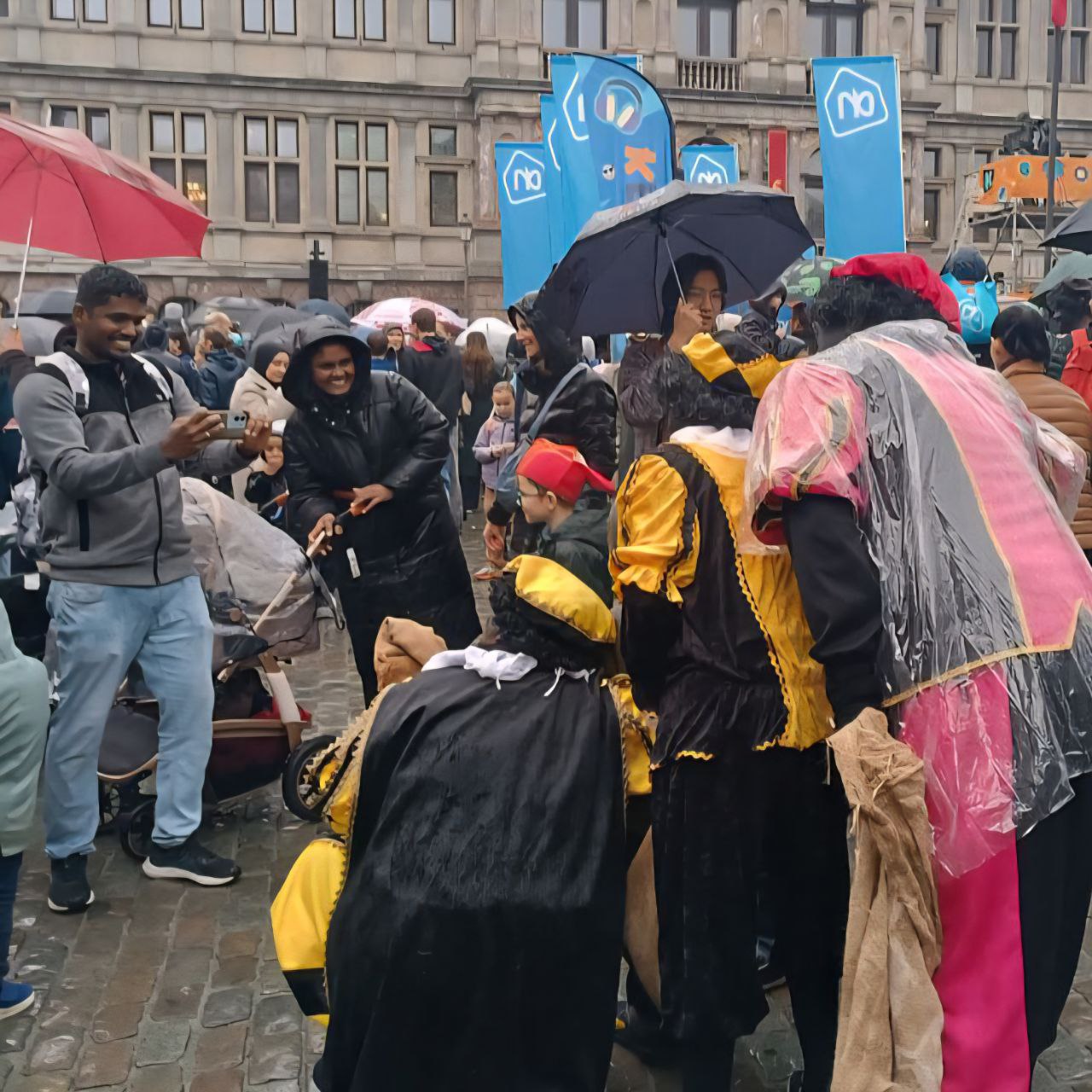 De Sint deed ook dit jaar weer zijn intrede, op 15 november in Antwerpen en de dag erop in Gent. Voorpost was er ook, met echte Zwarte Pieten. Onze Pieten konden rekenen op de belangstelling en waardering van jong en oud, blank en zwart.