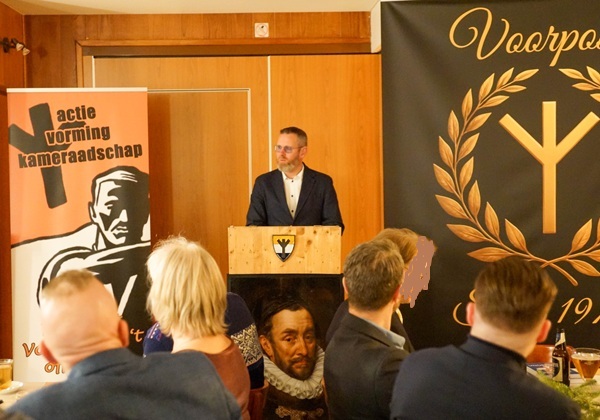 Tot slot was het aan nationaal actieleider Florens van der Kooi voor zijn toespraak. Daarin hij refereerde hij aan de oprichters die in de moeilijke jaren ’80 en ’90 de fundamenten hebben gelegd van moed, opoffering en trouw. Hij sprak zijn dankbaarheid uit om de strijd met Voorpost voor het Nederlandse volk voort te zetten.