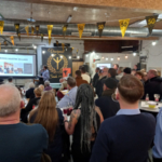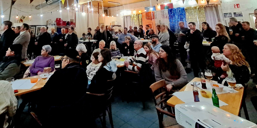 Actieleider Nick nam ons mee in een geanimeerd overzicht van de acties en activiteiten van het voorbije jaar. Luc lichtte daarna de sociale werking van Huizen van Vlaamse Solidariteit even toe. De toespraak van de voorzitter beëindigde het officiële deel, waarna we genoten van een hapje en een drankje onder kameraden.